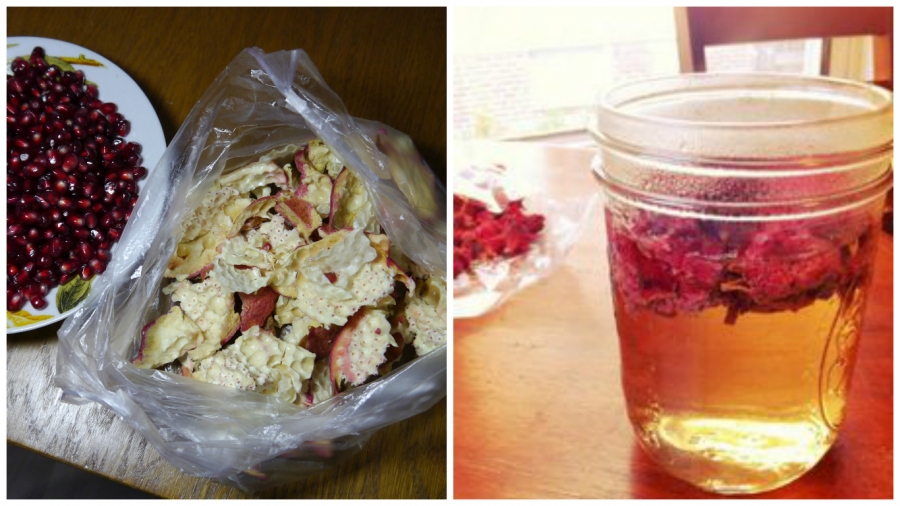 • 2 ჩაის კოვზ დაქუცმაცებულ ბროწეულის ქერქს დაასხით 1 ჩაის ჭიქა მდუღარე წყალი, ნახევარი საათი ადუღეთ წყლის ორთქლზე, შემდეგ გაფილტრეთ, მდუღარე წყლით შეავსეთ 1 ჭიქამდე და მიიღეთ მეოთხედი ჭიქა დღეში 2-3-ჯერ, ჭამამდე.