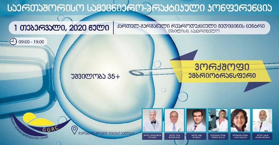 GGRC-ის ეგიდითა და საქართველოს უროლოგთა, მეან-გინეკოლოგთა და რეპროდუქტოლოგთა ასოციაციების მხარდაჭერით 2020 წლის 1თებერვალს "შერატონ გრანდ თბილისი მეტეხი პალასში" ჩატარდება საერთაშორისო სამეცნიერო-პრაქტიკული კონფერენცია "უშვილობა 35+".