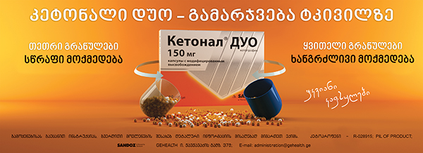 ჩემთვის, როგორც ექიმისათვის, ადვილია კეტონალი დუოს რეკომენდაცია პაციენტებისათვის, ვინაიდან მას ზურგს უმაგრებს მტკიცებულებები, რომ კეტონალ დუო-ს აქვს ერთ-ერთი ყველაზე მკაფიოდ გამოხატული ანალგეზიური - ტკივილგამაყუჩებელი ეფექტი, შვეიცარიული სიზუსტე და მაღალი ხარისხი.