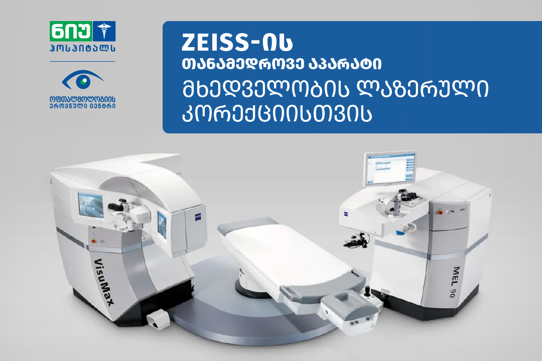 ფემტო-ექსიმერული ლაზერით (Zeiss Visumax Femtosecond / Excimer Laser Mel-90) აღიჭურვა და პაციენტებს მხედველობის ლაზერული კორექციის უსწრაფეს მეთოდს სთავაზობს.